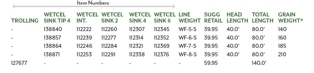 SA Wet Cell Full Sink Fly Line